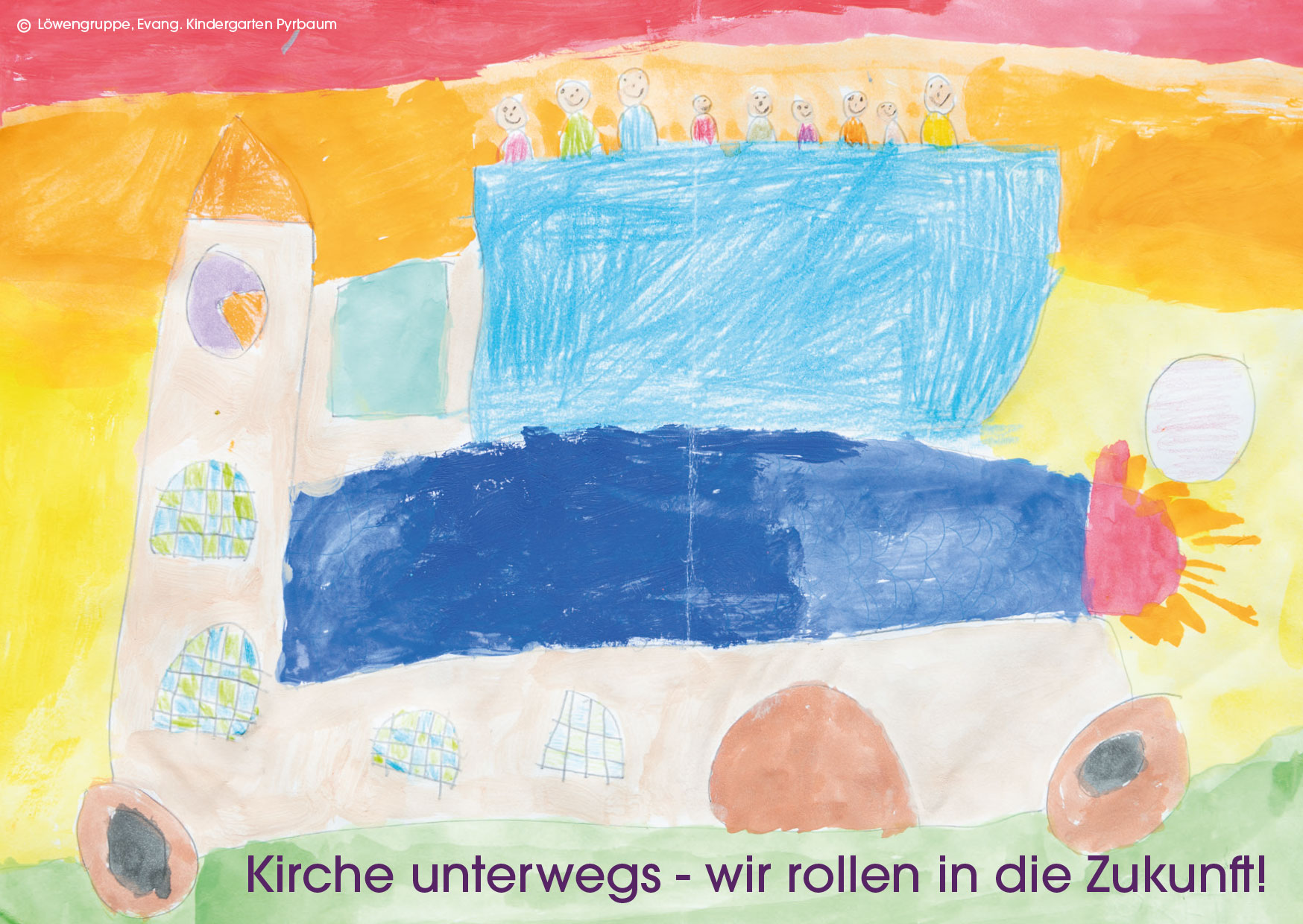 Die Löwengruppe aus der Evangelischen Kindergarten in Pyrbaum hat mit der "Rollenden Kirche" den Malwettbewerb zur KV Wahl im Kirchenkreis Regensburg…