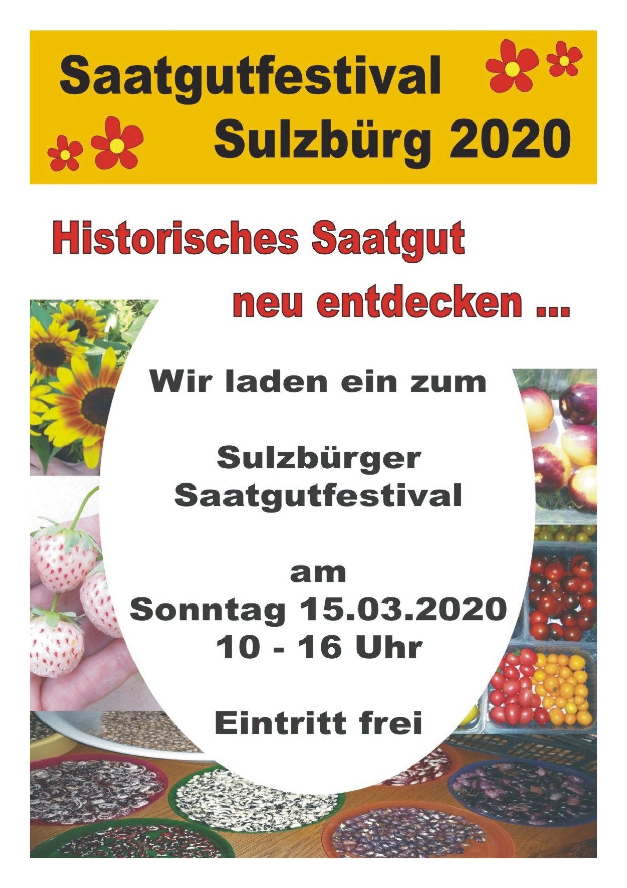 Am Sonntag, den 15.03. findet in Sulzbürg von 10.00 - 16.00 Uhr das Saatgutfestival statt.
