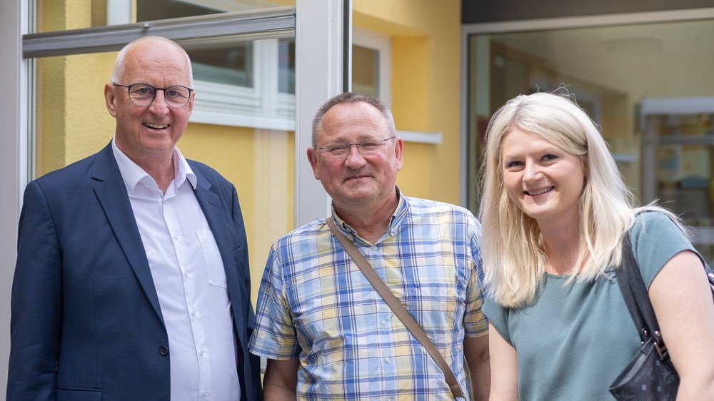 Beim Sommerfest des evangelischen Regenbogen Kindergartens in Pyrbaum übergibt Regionalbischof Stiegler den ersten Preis für den Gewinn des…